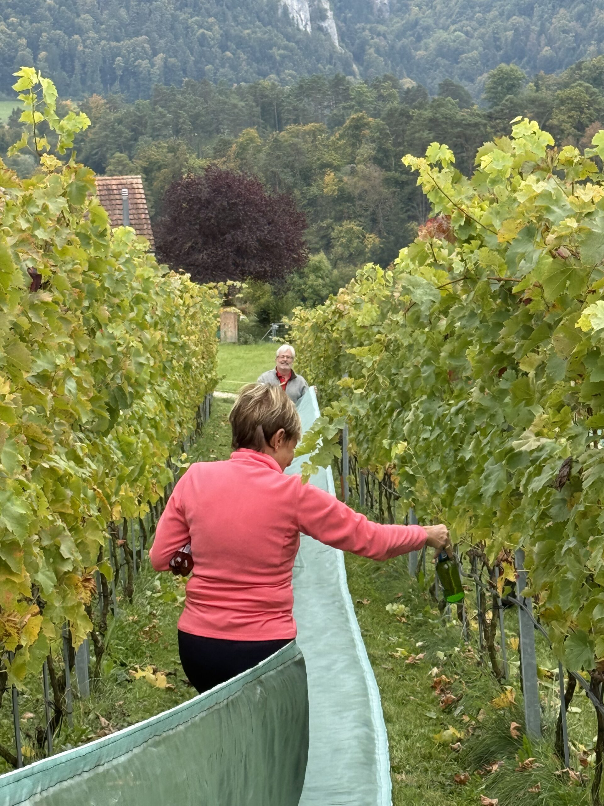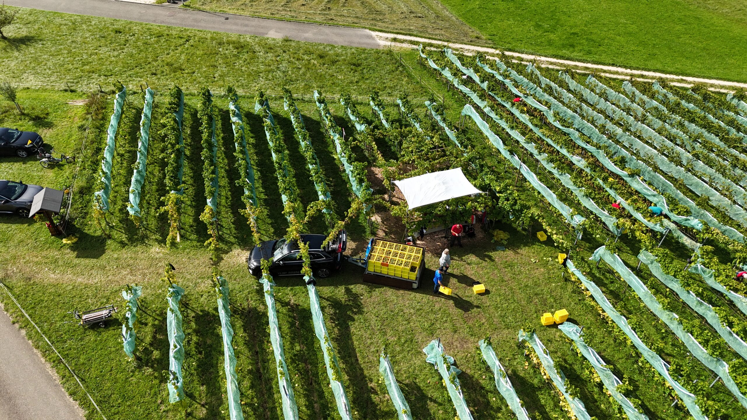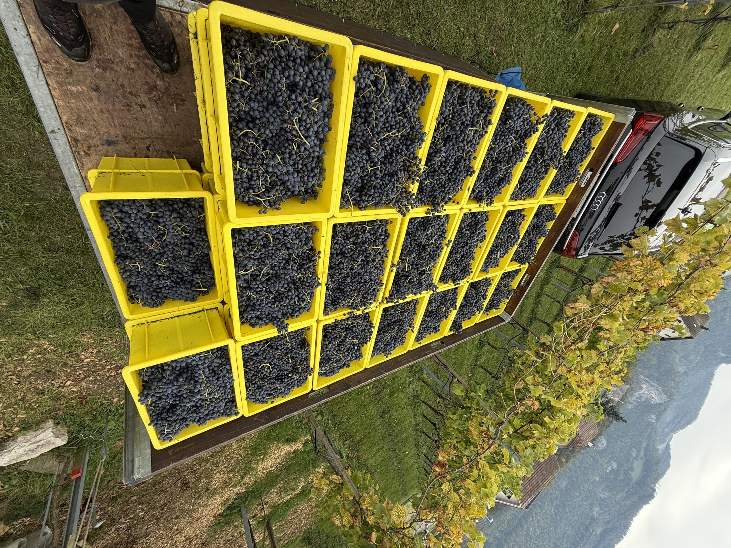 Die Ernte 2025 war trotz schwierigen Wetterbedingungen im August und September, mit immer wiederkehrenden Niederschlägen, sehr gut. Menge und Qualität stimmen und wir dürfen uns auf einen feinen Jahrgang 2025 freuen.