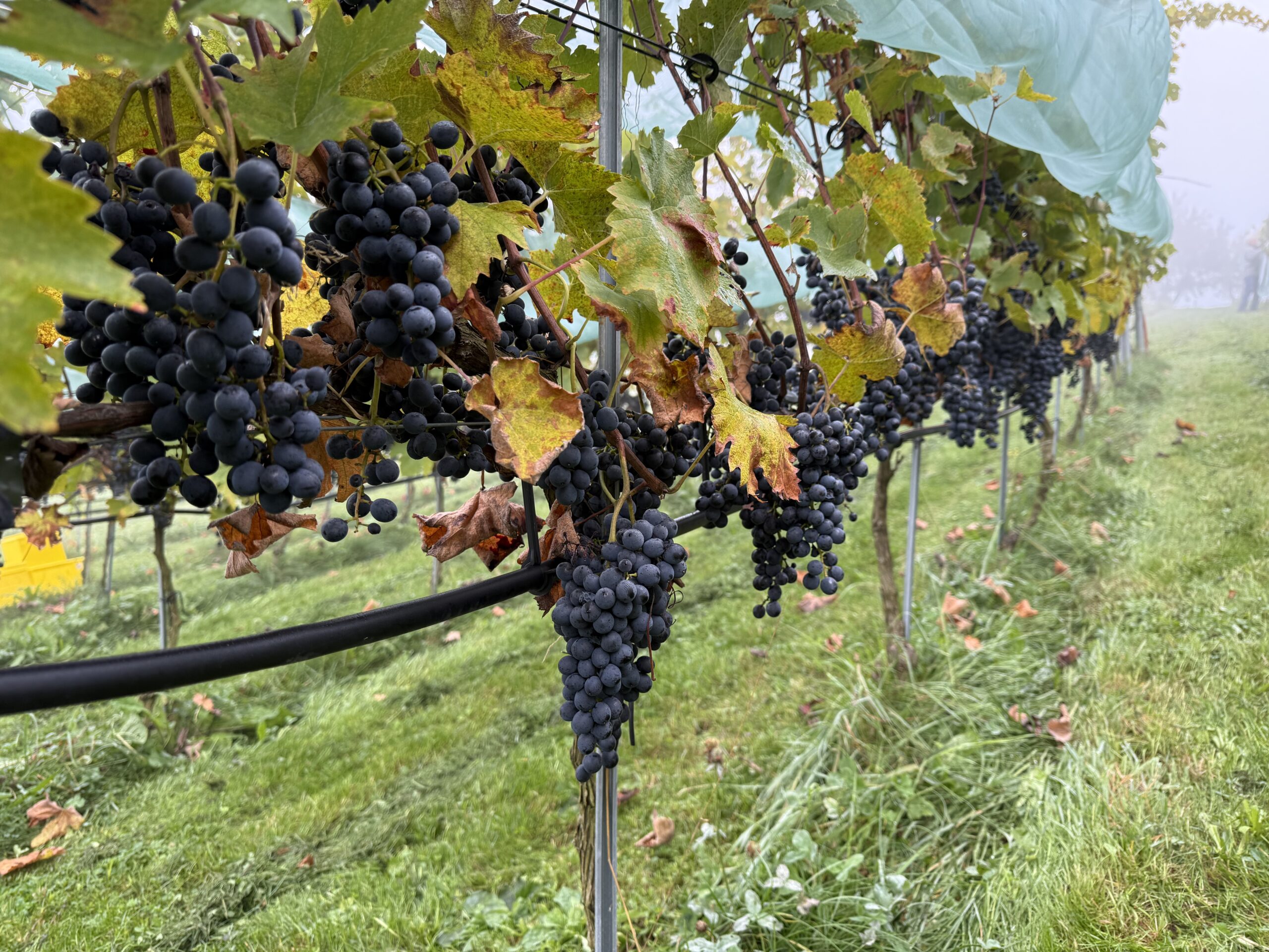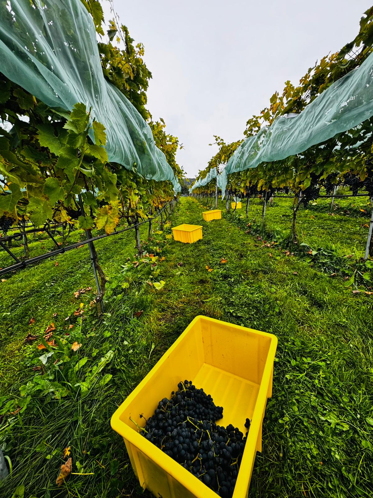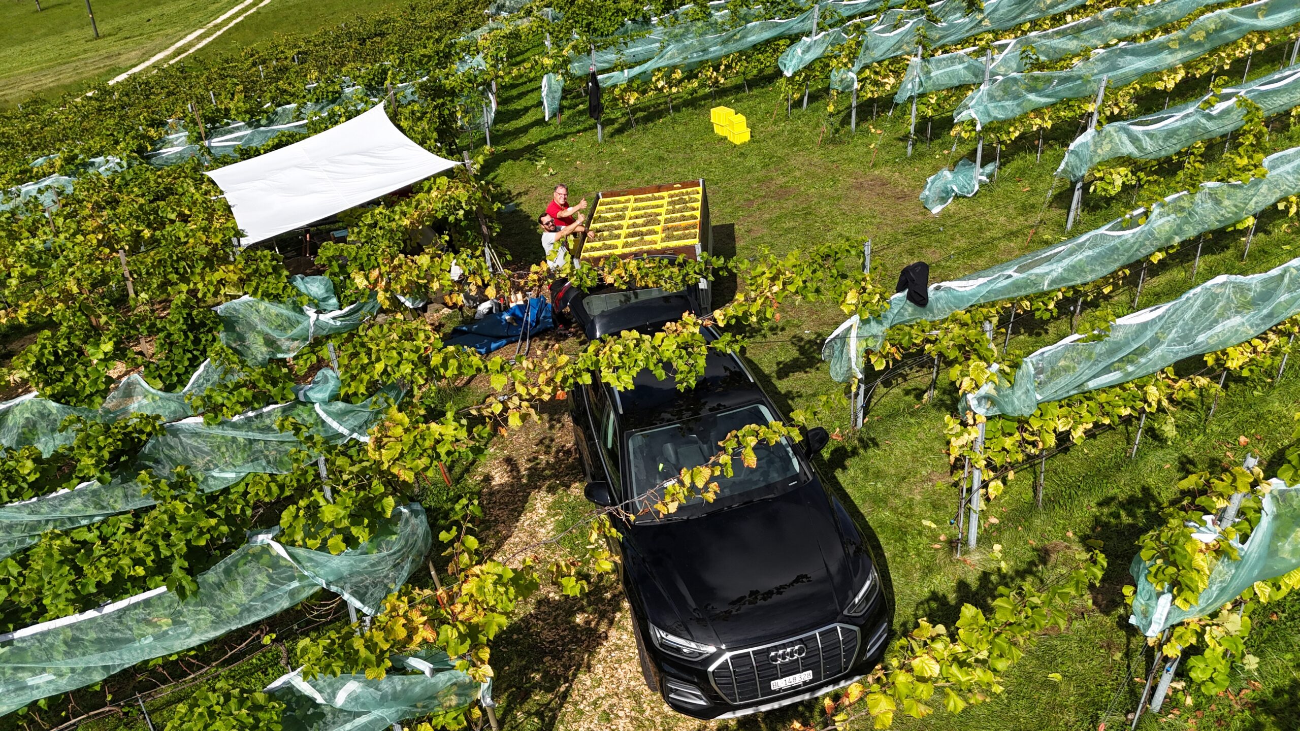 Die Ernte 2025 war trotz schwierigen Wetterbedingungen im August und September, mit immer wiederkehrenden Niederschlägen, sehr gut. Menge und Qualität stimmen und wir dürfen uns auf einen feinen Jahrgang 2025 freuen.